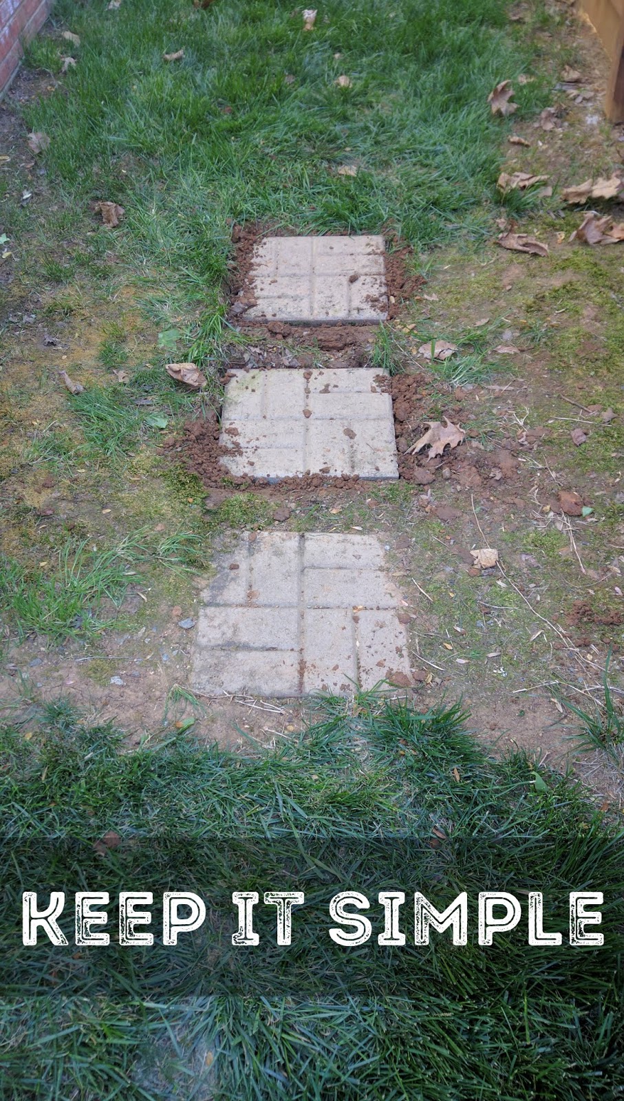 Since I don't want to post pictures of it yet I will post pics of an older project! A couple months ago I installed three stepping stones that were extra finds next to our patio. Instead of disposing of them we're using them.